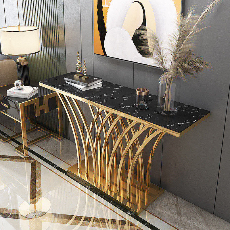 Personnalisez votre propre table de console de plateforme d'entrée en marbre de luxe, table de plateforme d'entrée en acier inoxydable, ou table de côté avec SEDIA.Notre table de console d'entrée est conçue avec une largeur de 45 cm et une finition brillanteIl est nécessaire de l'assembler et la livraison peut prendre jusqu'à 30 jours.