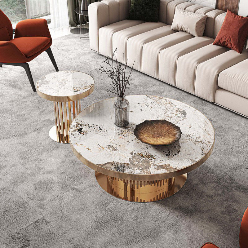 Cette table à thé en marbre est parfaite pour ajouter un style moderne à n'importe quel espace de vie.Cette table de taille moyenne a un haut en marbre lisse et est parfaite pour tenir des boissons.Cette table de marbre est un excellent moyen d'ajouter un accent élégant et fonctionnel à n'importe quel salon, chambre à coucher ou espace de divertissement.Le design moderne de cette table à thé en marbre apportera une touche contemporaine à n'importe quel espace..